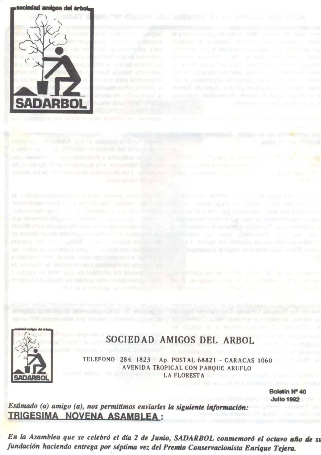 Es una sociedad sin fines de lucro, fundada el 05 de Junio (Día Internacional del Ambiente) de 1984. La misión de SADARBOL es motivar, canalizar e instrumentar el amor hacia el árbol. Este blog ha sido creado y es mantenido por las Juntas Directivas de SADARBOL para hacer llegar a todos los interesados la filosofía, acciones y conocimientos de los Amigos de los Árboles!!! nuestro correo electrónico es sadarbol@gmail.com