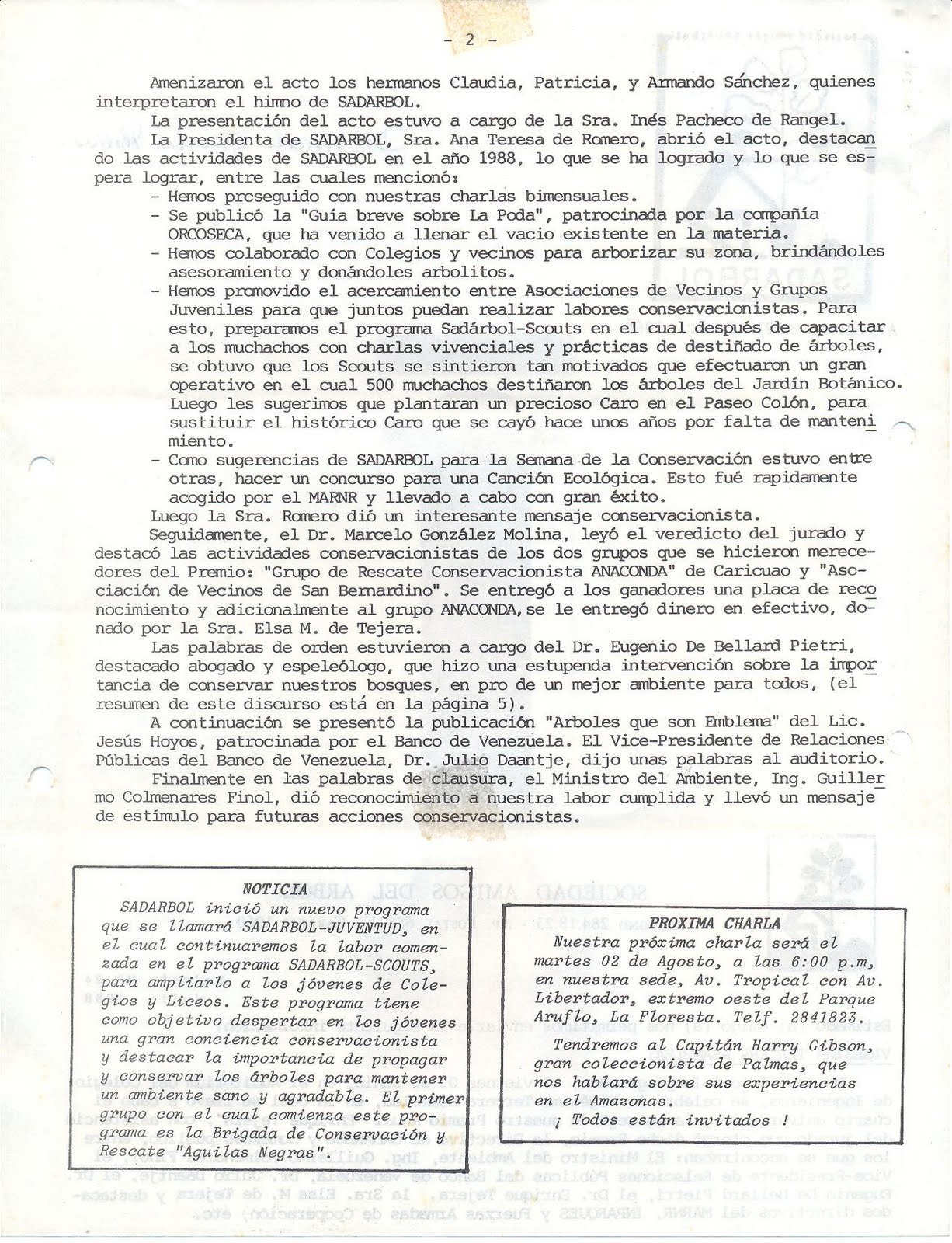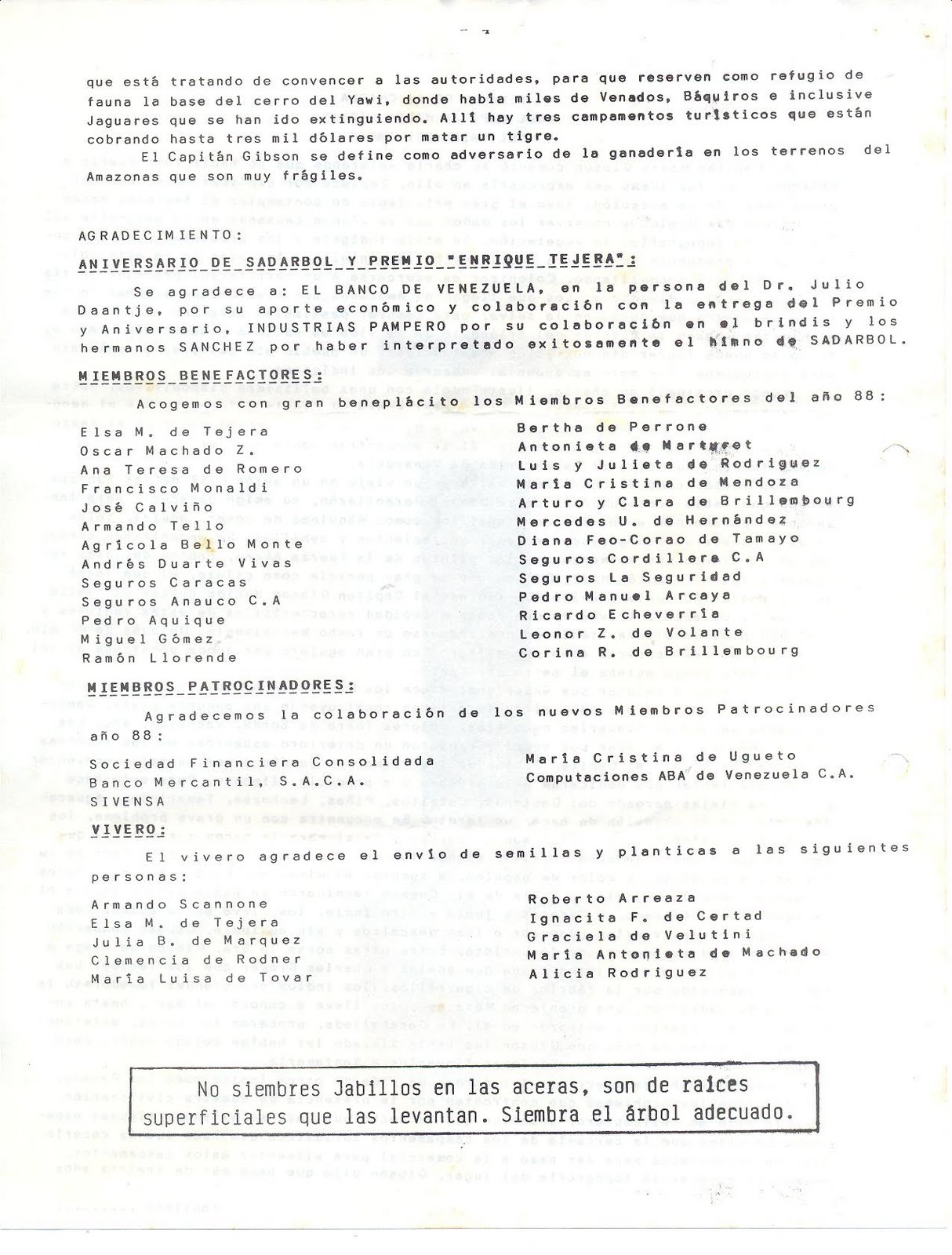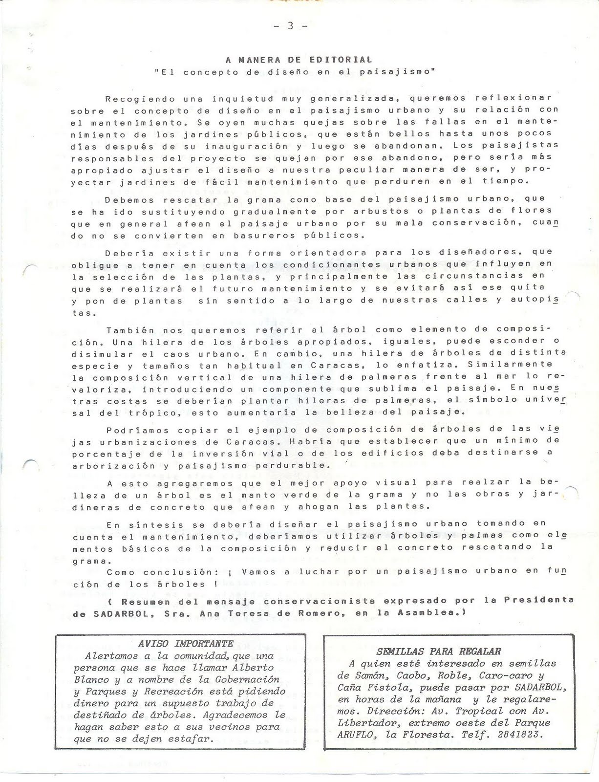 Es una sociedad sin fines de lucro, fundada el 05 de Junio (Día Internacional del Ambiente) de 1984. La misión de SADARBOL es motivar, canalizar e instrumentar el amor hacia el árbol. Este blog ha sido creado y es mantenido por las Juntas Directivas de SADARBOL para hacer llegar a todos los interesados la filosofía, acciones y conocimientos de los Amigos de los Árboles!!! nuestro correo electrónico es sadarbol@gmail.com