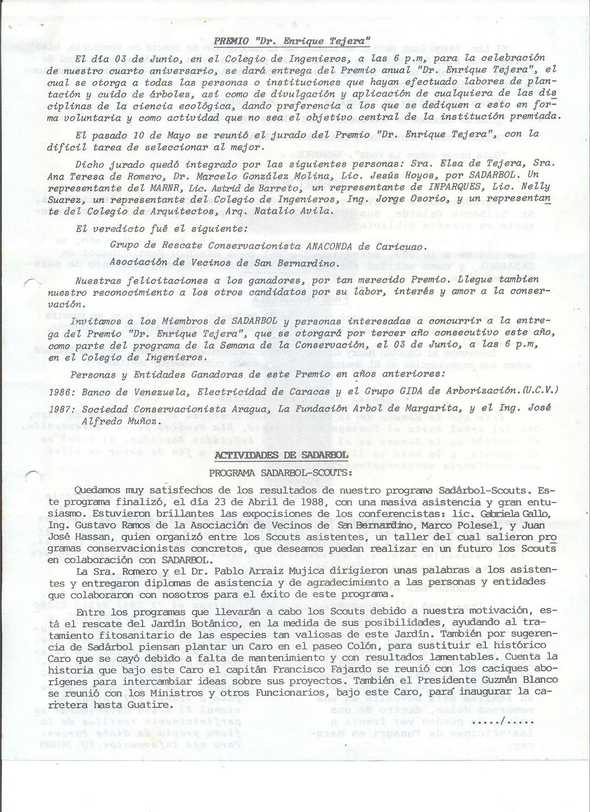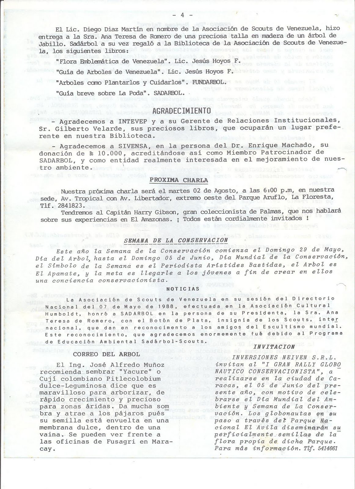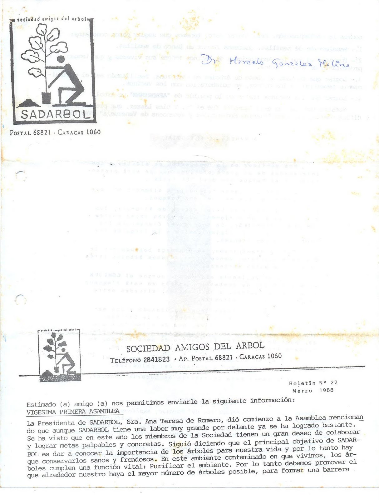 Es una sociedad sin fines de lucro, fundada el 05 de Junio (Día Internacional del Ambiente) de 1984. La misión de SADARBOL es motivar, canalizar e instrumentar el amor hacia el árbol. Este blog ha sido creado y es mantenido por las Juntas Directivas de SADARBOL para hacer llegar a todos los interesados la filosofía, acciones y conocimientos de los Amigos de los Árboles!!! nuestro correo electrónico es sadarbol@gmail.com