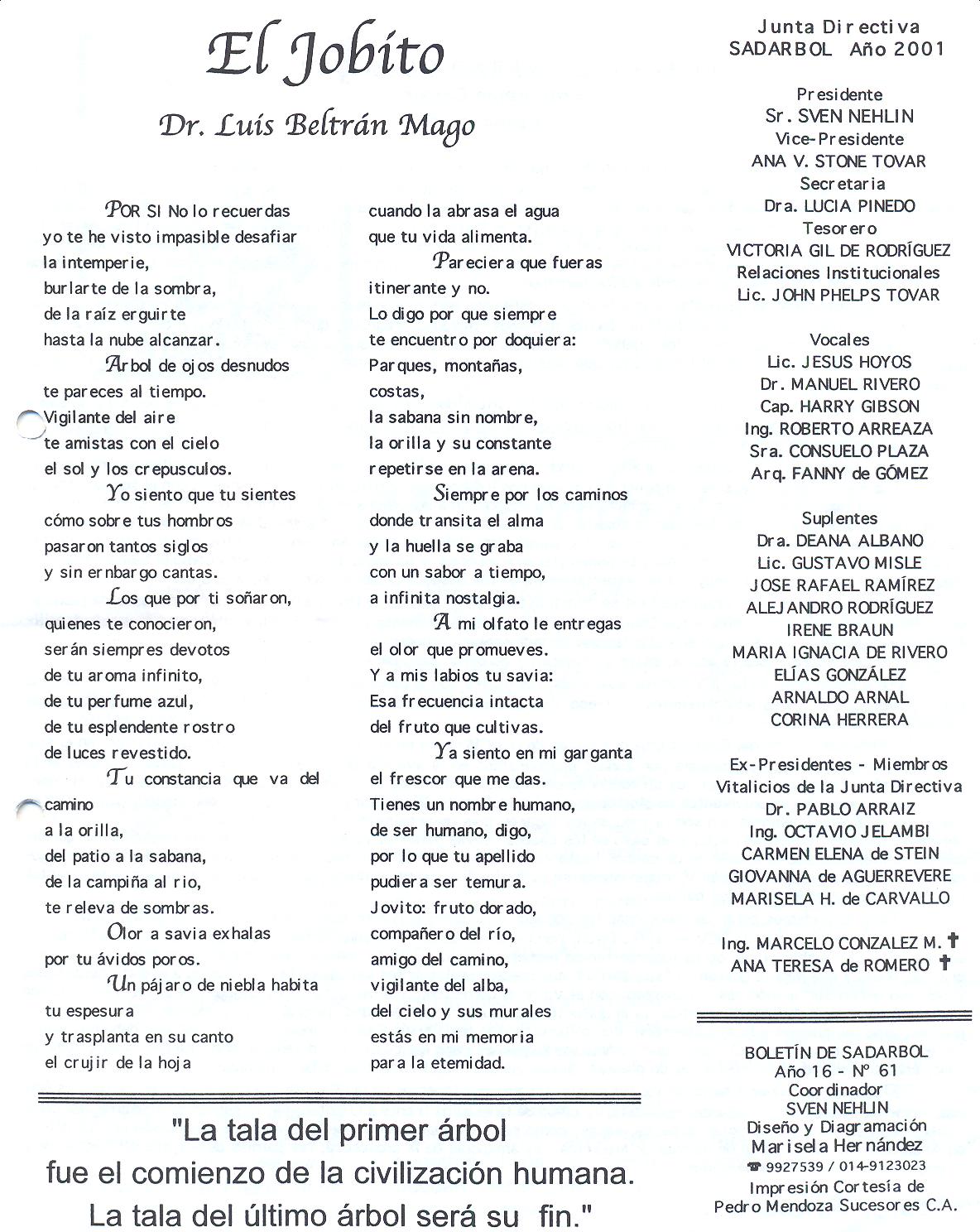 Es una sociedad sin fines de lucro, fundada el 05 de Junio (Día Internacional del Ambiente) de 1984. La misión de SADARBOL es motivar, canalizar e instrumentar el amor hacia el árbol. Este blog ha sido creado y es mantenido por las Juntas Directivas de SADARBOL para hacer llegar a todos los interesados la filosofía, acciones y conocimientos de los Amigos de los Árboles!!! nuestro correo electrónico es sadarbol@gmail.com