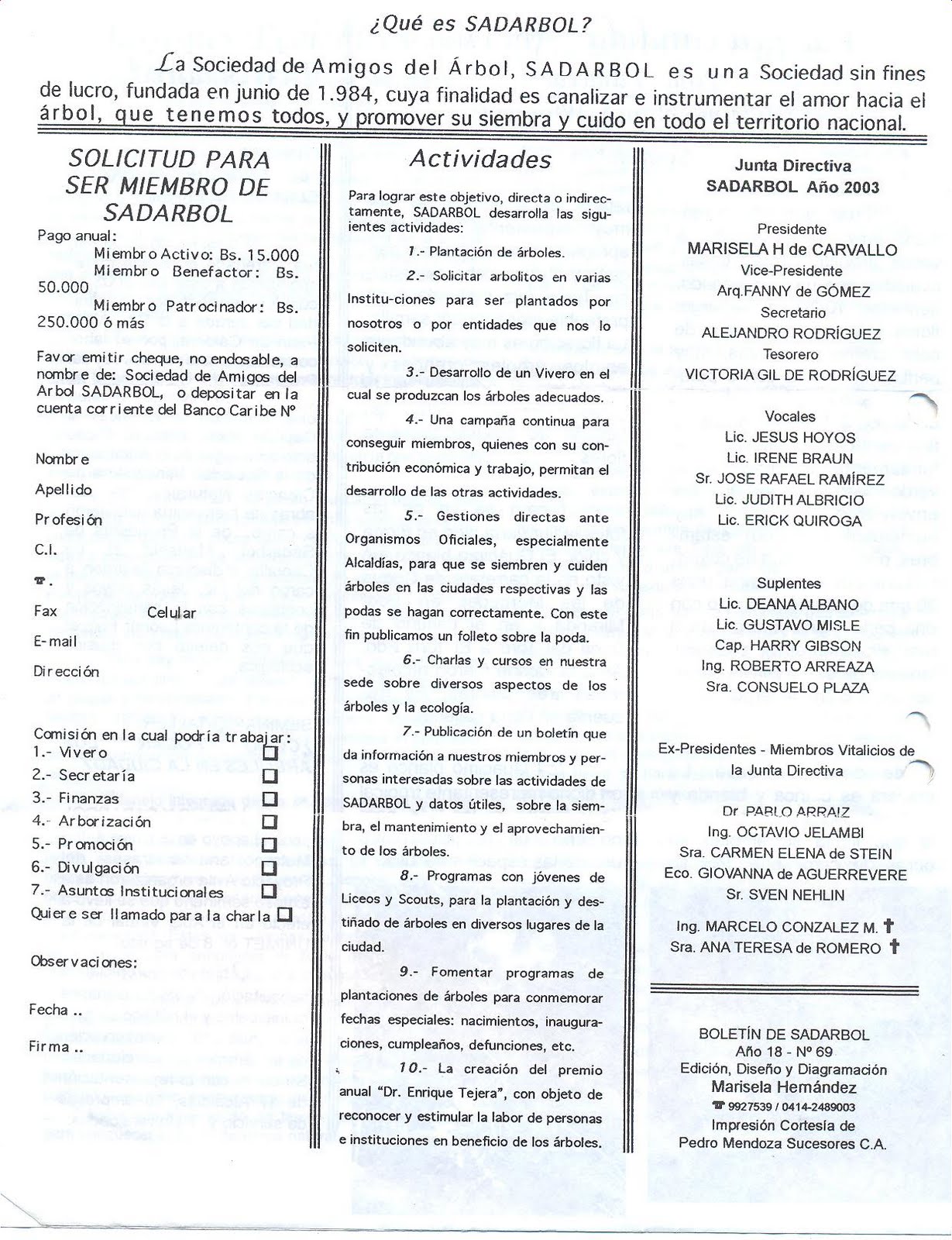 Es una sociedad sin fines de lucro, fundada el 05 de Junio (Día Internacional del Ambiente) de 1984. La misión de SADARBOL es motivar, canalizar e instrumentar el amor hacia el árbol. Este blog ha sido creado y es mantenido por las Juntas Directivas de SADARBOL para hacer llegar a todos los interesados la filosofía, acciones y conocimientos de los Amigos de los Árboles!!! nuestro correo electrónico es sadarbol@gmail.com